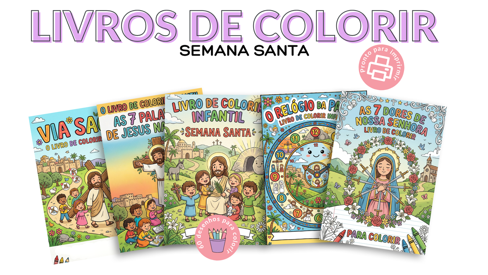 São 60 ilustrações da Semana Santa, divididas em 5 livros: